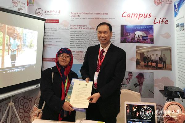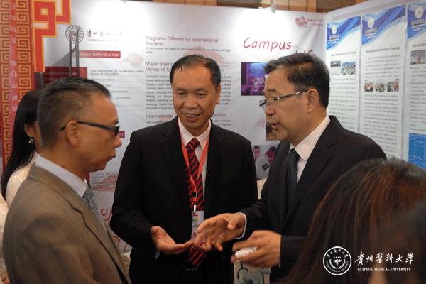 教育展上,孙志刚在我校展台驻留,亲切询问和关心学校医学教育发展情况。林昌虎详细介绍了现阶段学校医学国际教育及对外合作交流工作取得的经验和成果。孙志刚对我校此次展会宣传工作给予极大肯定和鼓励,并向徐步大使及娜达司长推荐介绍了我校,他指出:bt365官网哪个真的是一所具有深厚历史文化底蕴的优秀医科大学,希望学校能发挥地方高等医学学府的自身优势,加强对外交流合作,创新国际医学教育模式,厚积薄发,再接再厉,为贵州经济社会发展作出更大的贡献。