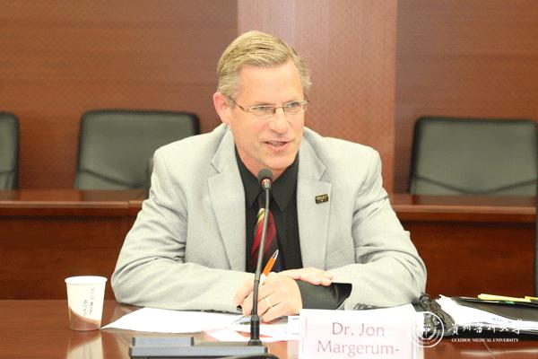 Jon Margerum-Leys教授对我校的热情接待表示感谢,回顾了奥克兰大学与中国开展中学教师培养及研究生学位教育的合作历史,介绍了奥克兰大学的概况,并特别介绍了该校的心理咨询系致力于培养医学生的医患关系建立、维护与交流技能,关注自闭症病人,希望在医学教育、人文教育、行政管理等方面加强往来与交流,在教学、科研、学生培养、教师互访等方面加强合作,诚邀我校代表团赴美国密歇根访问。