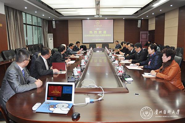 1月9日上午,日本葵会医疗法人社团理事长新谷幸义,日本东京都议会自由民主党、日中经济交流议员联盟会长野村有信,国际医疗福祉大学大学院教授竹内孝仁,世界华人协会常委理事方五二,社会福祉法人东京武尊会事务局局长野村大悟,北京天坛医院神经外科教授刘海。盛田産業株式会社取締役盛田春雄及李惠玲女士等一行9人到我校交流访问。学校在北京路校区行政楼六楼连廊会议室召开了座谈会,党委书记林昌虎,校长何志旭,副校长、附属医院院长刘健,副校长罗鹏出席了会议,党委办公室、校长办公室、教务处、国际交流合作处、护理学院等部门相关负责人参加了会议,会议由副校长罗鹏主持。