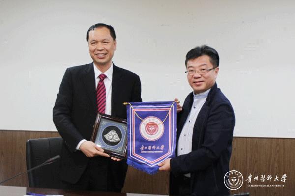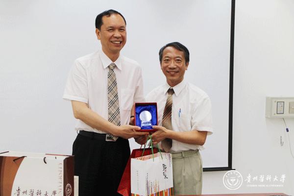 与辅英科技大学副校长张可立互赠礼物