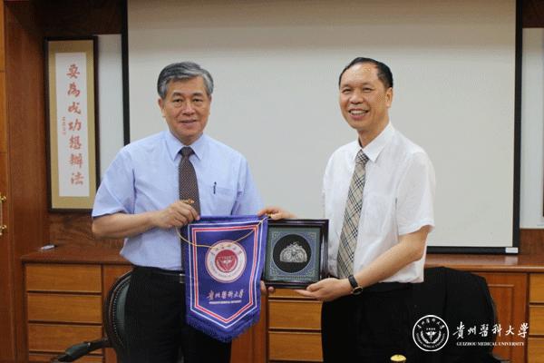 与建国科技大学校长陈繁兴互赠礼物
