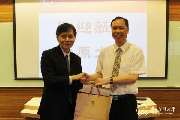 与中原大学副校长李英明互赠礼物