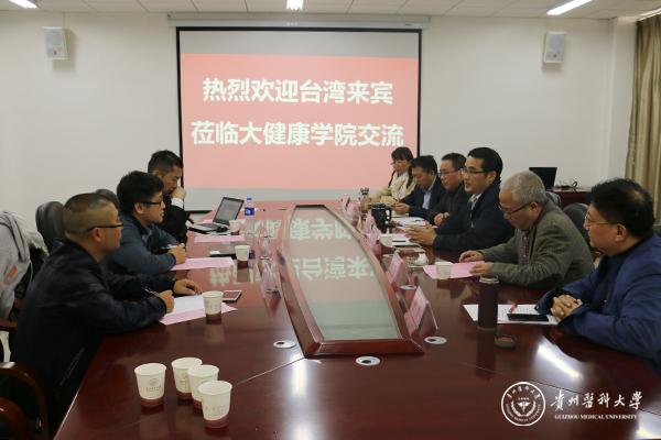 11月1日,台湾天来诺亚克股份有限公司执行长沈家平、台湾天来创新生活产业股份有限公司总经理王人星、贵州腾迈智医大数据科技发展有限公司杨华一行莅临我校大健康学院交流访问。副校长罗鹏出席交流会,大健康学院党政领导班子及教师代表参加。