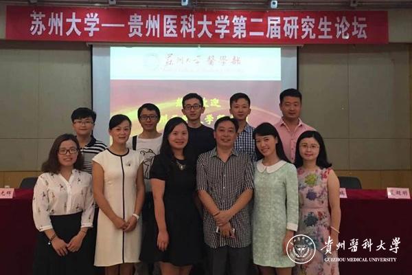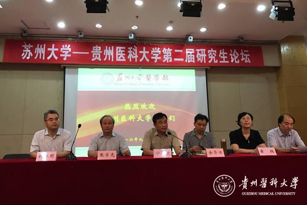 余资江教授介绍了贵医研究生教育现状,对苏大师生在贵医更名、学科建设等工作中给予的巨大支持表示感谢。并结合苏大校训“养天地之正气,法古今之完人”和贵医校训“诚於己 忠于群 敬往思来”勉励两校医学研究生努力学习,成长为祖国医疗卫生事业合格的接班人。