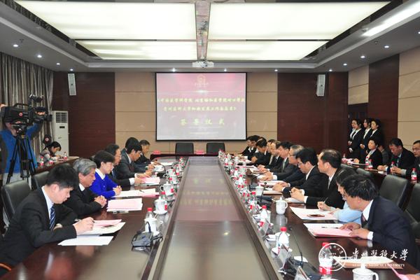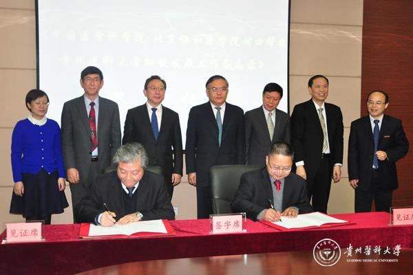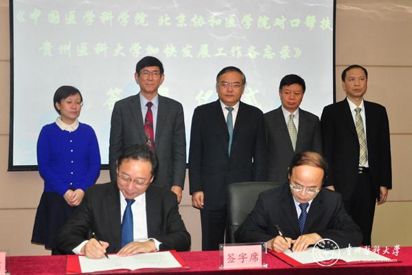 11月23日上午,中国医学科学院 北京协和医学院对口帮扶我校加快发展工作备忘录签署仪式在北校区综合楼六楼连廊会议室隆重举行。贵州省人民政府副省长何力,中国医学科学院北京协和医学院校长、中国工程院院士曹雪涛,党委书记、副院校长李国勤,副院校长张勤及该院校相关领导,贵州省卫生计生委主任王忠、副主任张光奇及相关处室领导,我校校领导及相关职能部门负责人出席签署仪式。仪式由王忠主持。