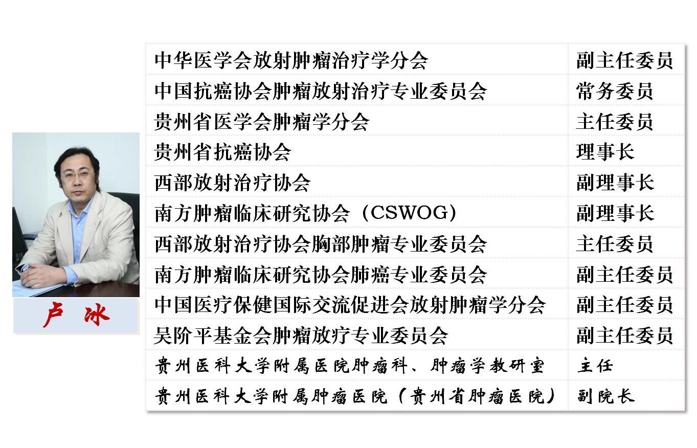 卢冰教授从事临床及相关研究工作近三十年,尤其对肺癌的放疗、化疗、分子靶向药物治疗及规范化综合治疗进行了深入研究。率先在省内开展肺癌等胸部肿瘤的三维适行、离体定向(X-刀)、调强、图像引导等多项国际先进的精准放射治疗新技术,应用化疗及分子靶向药物治疗的新成果,探索新的综合治疗模式。卢冰教授对晚期NSCLC(非小细胞肺癌)放疗干预的研究,使远处转移患者5年生存率由6%提高至10%,该成果在BMC Cancer及美国放射肿瘤学官方杂志Int J Radiat Oncol Biol Phys发表,并作为当期杂志的Issue Highlights,美国加州大学圣迭戈分校Moores肿瘤中心肿瘤放射学教授Catheryn M. Yashar评价:“This kind of strategy may have some role in palliationat present, but will likely become more important if systemic therapy could improve”。卢冰教授对IV期NSCLC患者接受早期放疗干预的研究被国内最权威放射肿瘤学期刊《中华放射肿瘤学杂志》以“研究专题”形式刊登,选为2011年度“重要研究号”,放射肿瘤学泰斗殷蔚伯教授为此撰写编者按,并入选《国家卫生和计划生育委员会住院医师规范化培训规划教材?肿瘤放射治疗学》。