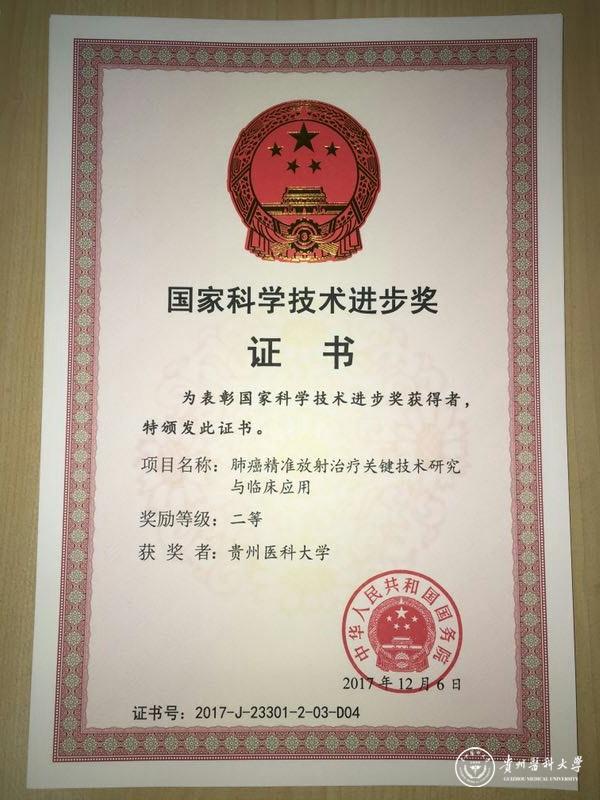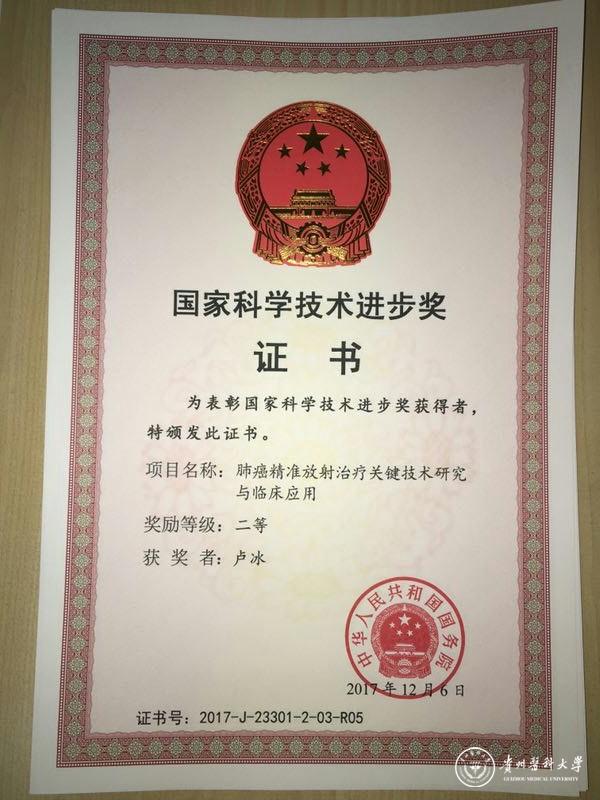 1月8日,2017年度国家科学技术奖励大会在北京人民大会堂隆重举行。我校卢冰教授参与完成的《肺癌精准放射治疗关键技术研究与临床应用》项目,荣获国家科技进步二等奖。