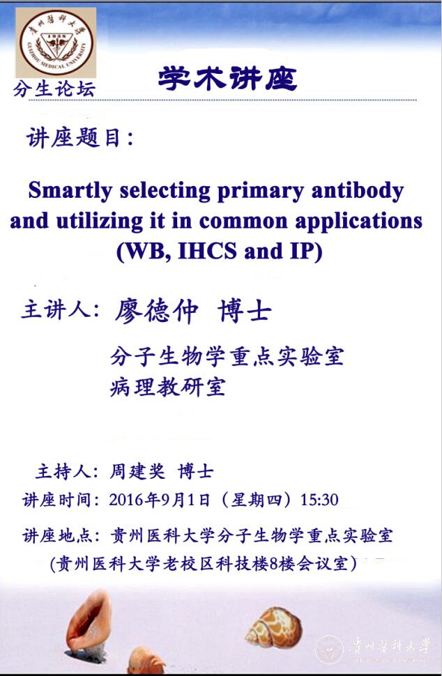 上一条:【9月13日下午15:30】廖德仲博士:A primer of biotech: from primer design, RT and PCR to agarose gel 下一条:【7月14日下午14:30】廖德仲教授、禹文峰教授:My failed career in challenging some mainstreams of biomedical research