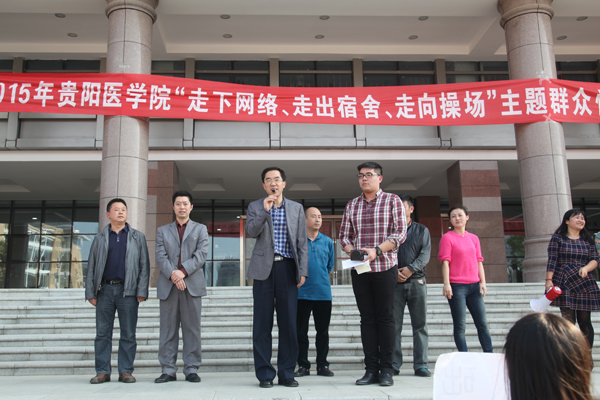 4月1日下午,由校团委主办、大学生社团联合会承办的2015“走下网络,走出宿舍,走向操场”为主题的群众性课外体育锻炼活动暨社团文化活动月启动仪式在我校图书馆前举行。校党委副书记战勇、相关职能部门负责人、校团委全体干部及、各院(系)分团委(团总支)负责人、各院系师生参加了活动。