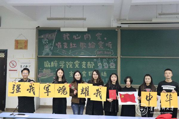 为扎实推进“两学一做”学习教育常态化、制度化,进一步贯彻《省委教育工委转发省委组织部关于进一步健全完善党支部主题党日制度的工作提示》要求,歌颂新中国成立以来特别是改革开放以来取得的辉煌成就, 11月17日,麻醉学院在北校区X2301教室开展以“我心向党,——唱支红歌给党听”为主题的党支部党日活动,麻醉学院党委书记刘建华及相关人员参加。
